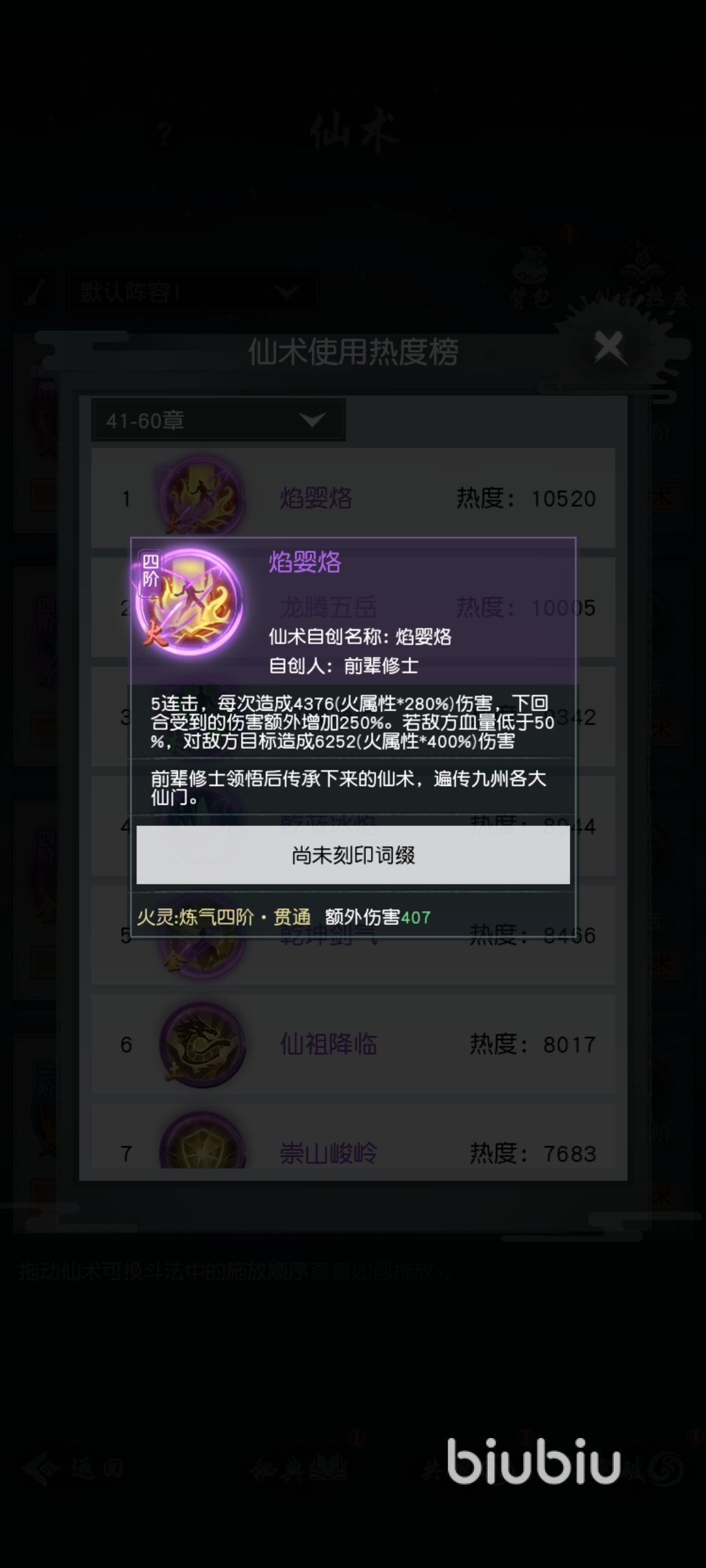 其次,好的仙術是適合玩家的仙術,每個玩家都有自己的體系,比如小編選擇的火系,那么其他系列的紫色仙術哪怕再好對于小編來說都沒有意義,一次好的仙術一定是搭配玩家的屬性和技能組而組成。