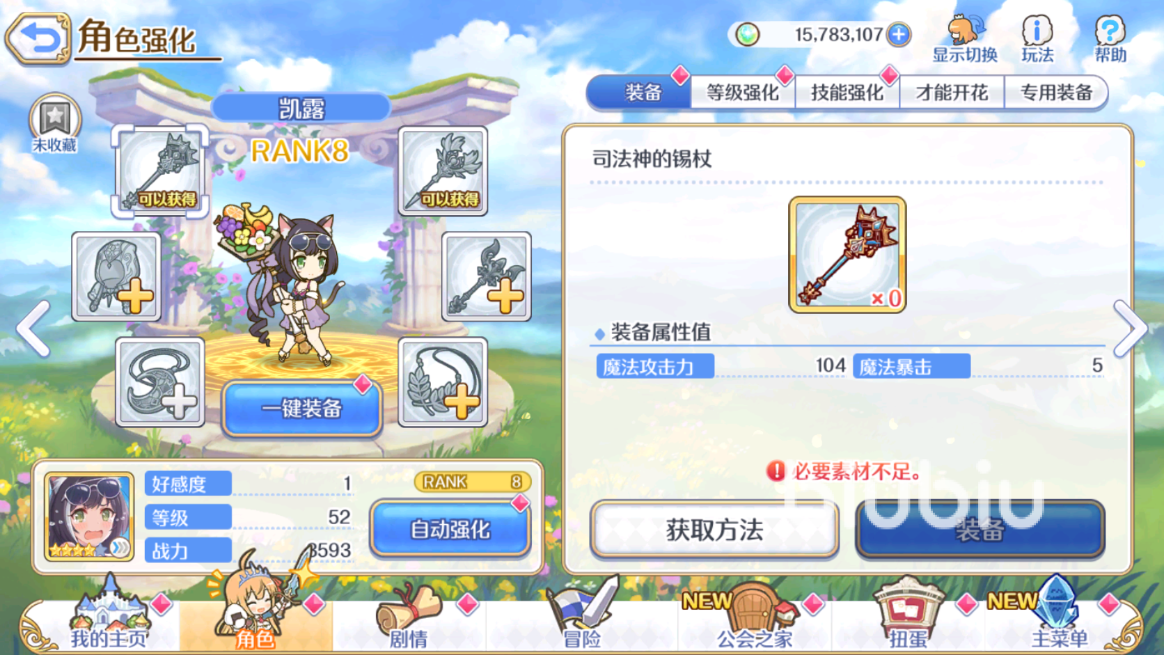 然后是角色:泳裝凱露,泳裝凱露在新版本更新后推出了專武,這讓本來有些退環(huán)境的她重登T0法傷輸出的寶座。泳裝凱露既可以降低敵人的法抗,其本身又是非常強勢的單體法術輸出角色,雖然競技場中的表現(xiàn)不那么亮眼,但是公會戰(zhàn)實力很強,對中后期推圖打活動幫助也很大。