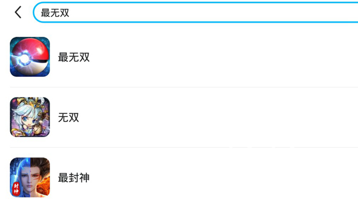 4.在搜索結(jié)果的第一行上點(diǎn)擊最無(wú)雙這幾個(gè)字,進(jìn)入到游戲的專(zhuān)區(qū)界面;