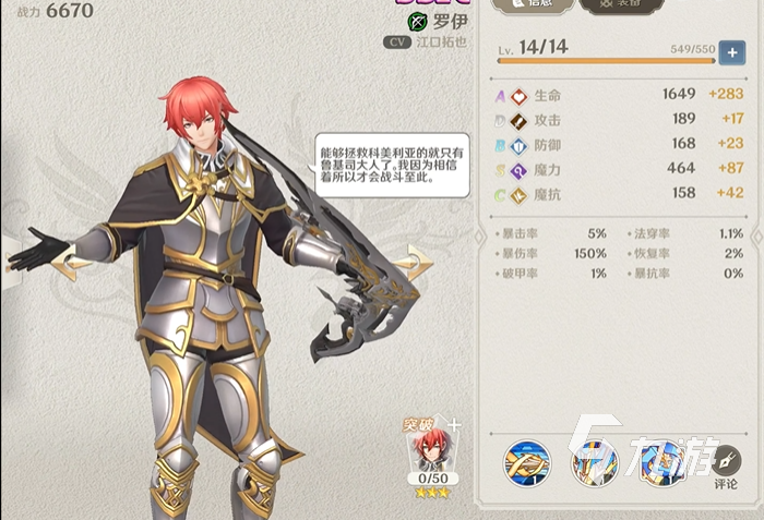 玩家可以選擇力量專注加攻其不備加物理傷害,當(dāng)然有的玩家也有自己的理解總之只要貼合羅伊這個(gè)英雄的屬性即可。