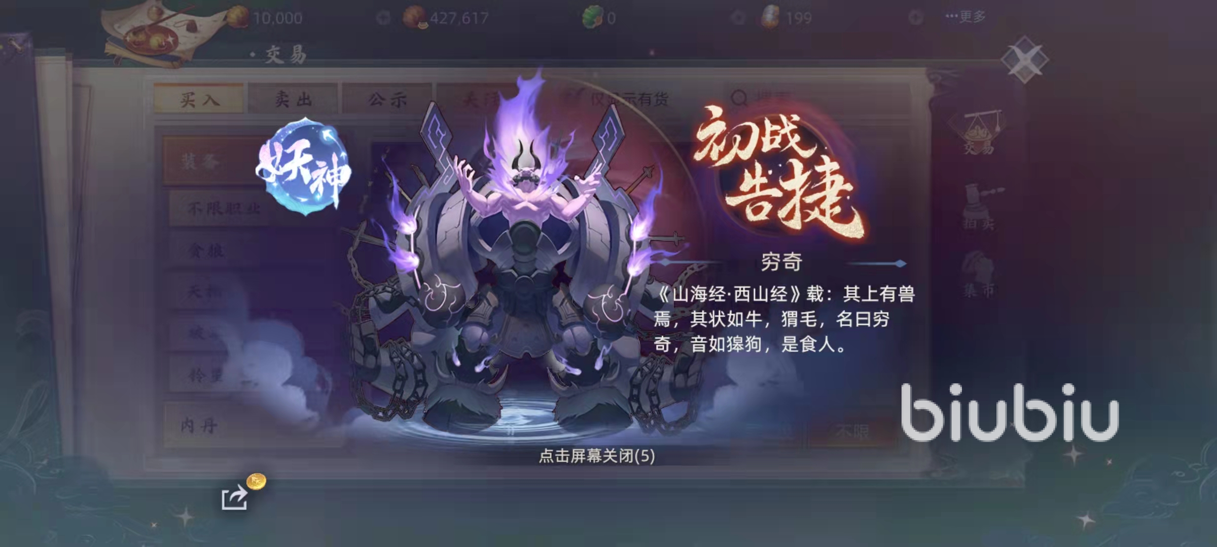 如果對自己封印的窮奇不滿意,那么可以等冷卻時間結(jié)束后重新封印,一般來說多試幾次就能獲得比較滿意的了。對于臉比較黑的用戶來說,也可以在交易行中直接購買,在交易行的化相果欄目中就可以找到當前所有出售的窮奇,點擊之后可以查看到商品窮奇的各種資質(zhì),慧根,評分和評級等屬性。通過這些手段獲得的是一代窮奇,然后通過繁殖的方式可以獲得第二代窮奇,二代窮奇無論是資質(zhì)還是屬性,都要比一代窮奇好一些。在繁殖的時候還可以加入元獸生育幸運丹,有更高的幾率獲得高品質(zhì)二代妖神。如果培養(yǎng)的好的話,窮奇可以陪伴我們很長時間。