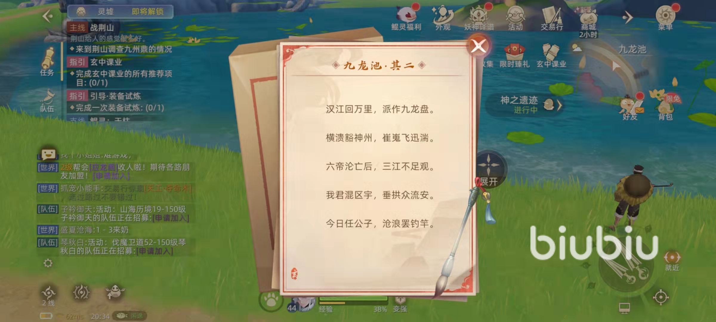 除了風景美麗之外,九龍池還有一個非常重要的作用,這里是應龍妖神的刷新點,把九龍石的地圖擴大到最大,就可以看見應龍的刷新位置,就在九龍池地圖中間的那棵大樹下面。應龍屬于70級的妖神,擅長的是水系法術,如果能捕捉到應龍的話,那么對于我們的戰(zhàn)力是一個非常大的提升。所以每當應龍刷新的時候,九龍池都會擠滿來搶怪的玩家。除了抓應龍之外,九龍池還是一個非常好的釣魚點,在九龍池中可以釣到蜜蜂魚,半月魚,赤剪魚,墨龍晴,石美人和燕子美人等魚類。在九龍池的(5796,4727)就可以看見釣魚的地點。