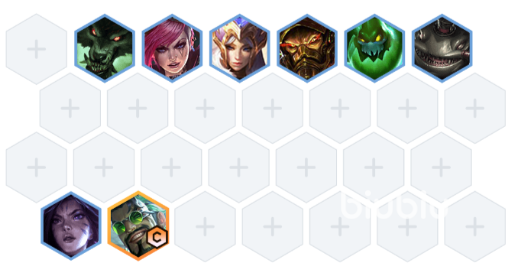 陣容組成:蠻王、德萊文、蔚、狼人、卡莎、派克、塔姆、豬妹。