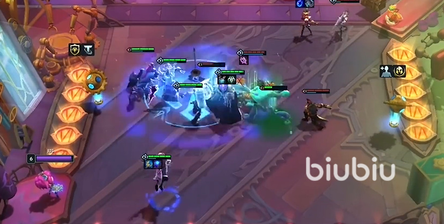 每個(gè)回合結(jié)束以后會(huì)給玩家分發(fā)經(jīng)驗(yàn)值與金幣,八名玩家在戰(zhàn)場(chǎng)上進(jìn)行一對(duì)一的角逐,最后只有一個(gè)玩家可以獲得勝利,而獲得勝利的途徑就是卡牌的組合。