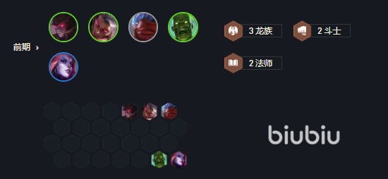 開局搶大劍或眼淚,優(yōu)先做婕拉的青龍刀,開局爆的錢比較多建議1-4F一下,這樣2-1自動升4有機會嫖3費卡開3龍。最佳過渡推薦用婕拉+烏迪爾+腕豪+炸彈人組成3龍族2法師,5人口補2斗士,反正3龍開的越早,吃分吃雞的幾率就越大。當(dāng)然前期實在不來3龍也可用火男+炸彈人+波比+錘石組成2法師2惡魔2騎士打工,前排也可換成2重騎,最遲等到6人口再決定陣容。