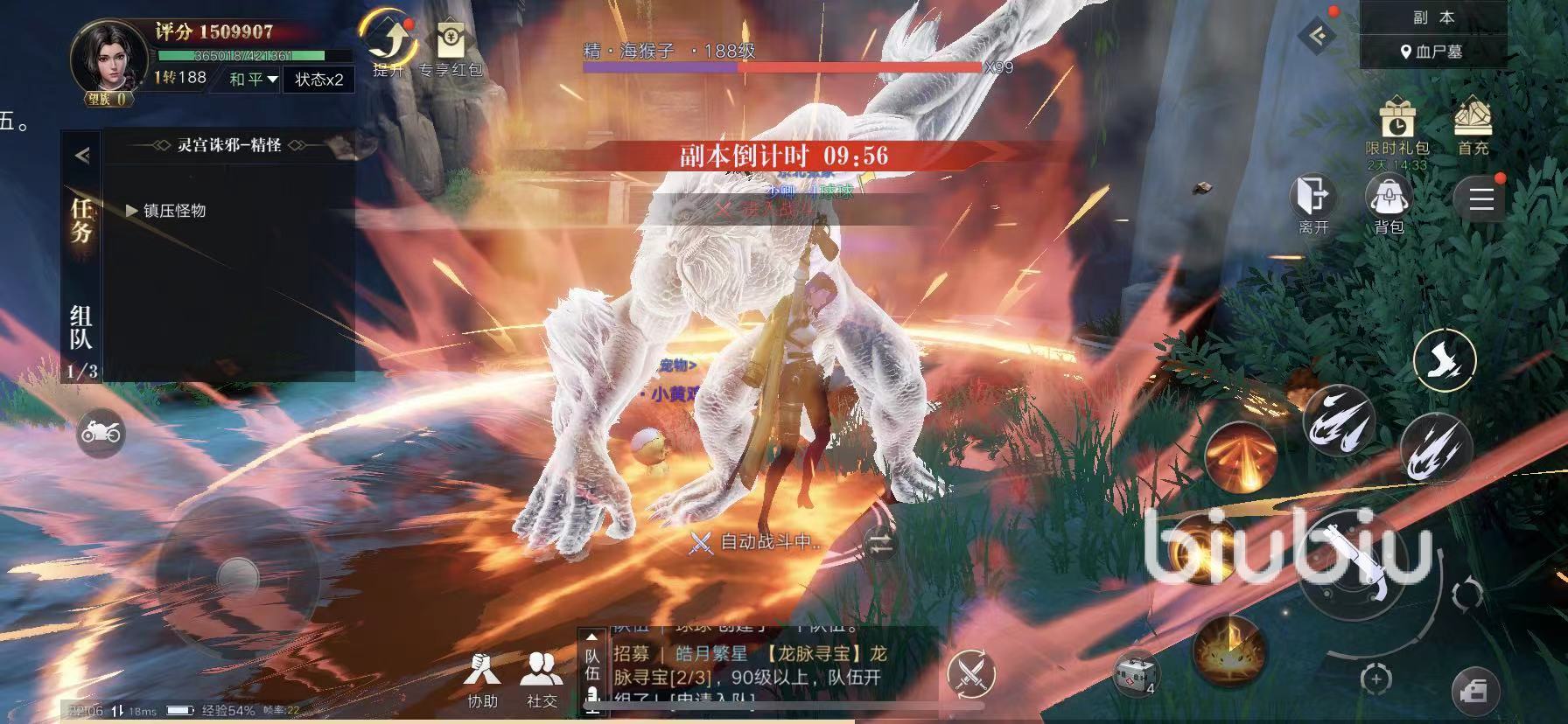 但是如果有小伙伴一起組隊(duì)打靈宮誅邪,就能很快速的完成啦,雖然一百層的血很厚,但是三個(gè)一百或者二百多級的玩家一起打,這血量還是很脆的。