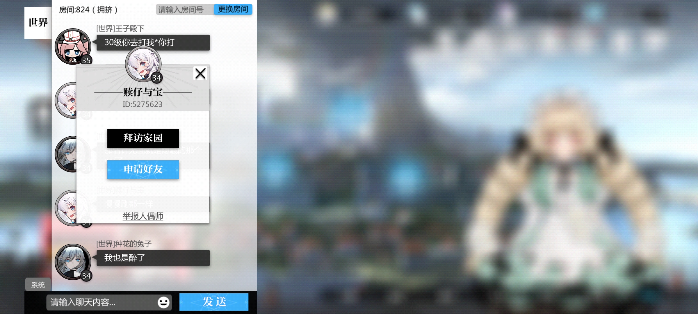 還有一種就是游戲中的好友,我們打開左下角的聊天頻道,找到想要加好友的玩家,點(diǎn)擊他的頭像然后點(diǎn)擊“申請(qǐng)好友”即可,等對(duì)方回復(fù)你確認(rèn)添加完畢之后,我們就可以在好友列表里找到他的。