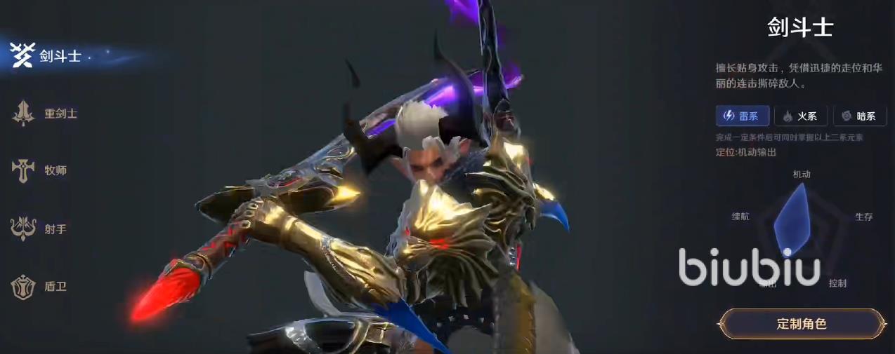 至于剩下的三個職業(yè),劍斗士來自卡斯塔尼克種族,他們有著和人類相似的外表,不過頭頂生有雙角,在隊伍里的定位為近戰(zhàn)輸出,既有靈活的身手,也有高超的戰(zhàn)斗技巧,輸出能力高;
