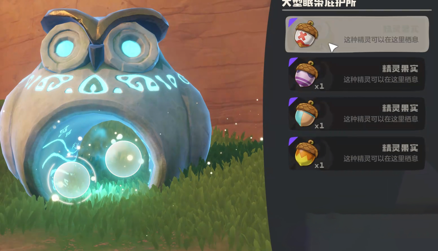 第一步,大家要打開地圖,找到魔法師的商店街道,這里有一個(gè)魔力之源,接著再找到眠梟庇護(hù)所,剛看到這里的是沒有任何反映的,原因是它需要眠梟之星字樣才可以正常運(yùn)作起來。而眠梟之星得到并不難,玩家在大地圖中是可以輕松找到的,再激活了眠梟庇護(hù)所之后,玩家就可以將自己得到的精靈果實(shí)放進(jìn)去了,根據(jù)不同的外觀判斷最終得到的是哪種精靈。