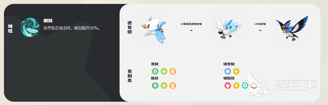 進化形態(tài)的嵐鳥實力非常的不錯,特性順風能讓玩家在先手的時候造成傷害提升50%,本身的速度115種族,加上潛能修正和道具輔助,在一般寵物中先手的概率非常的高,會讓玩家在戰(zhàn)斗的開場上取得一個不錯的優(yōu)勢,可以快速攻擊敵人然后替換下一只上場。
