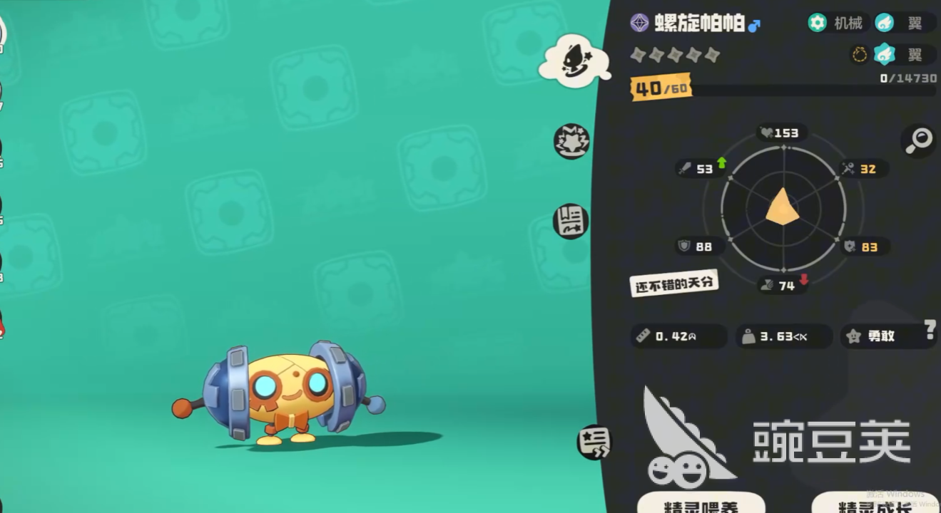 “螺旋帕帕”于游戲內(nèi)的屬性是機(jī)械屬性和翼屬性,它的種族數(shù)值為378點(diǎn),生命數(shù)值為79點(diǎn),物理攻擊數(shù)值為42點(diǎn),魔法攻擊數(shù)值為17點(diǎn),物理防御是87點(diǎn),魔法防御是73點(diǎn),基礎(chǔ)速度數(shù)值80點(diǎn)。