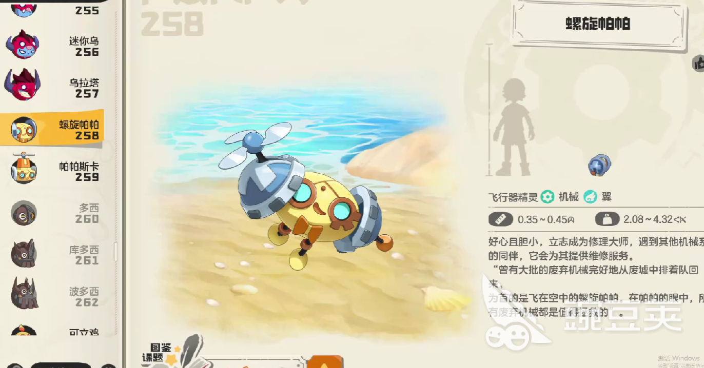 如若玩家在游戲當(dāng)中想要捕捉它,可以在大世界內(nèi)前往到“撈船鎮(zhèn)”的西側(cè),在海岸邊即可通過(guò)“稀獸花種”來(lái)抓捕獲取初始形態(tài)小精靈,當(dāng)然玩家也可以選擇購(gòu)買螺旋帕帕的精靈蛋,隨后直接進(jìn)入到孵化艙中孵化,即可在周遭增加捕獵成功的概率。