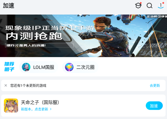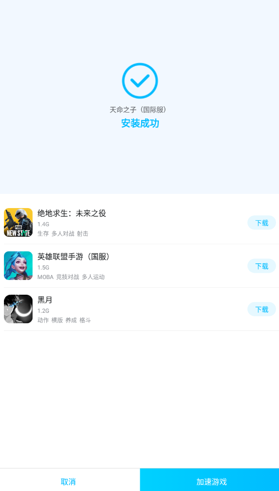 首先,玩家需要先下載并安裝好biubiu加速器,然后在加速器當(dāng)中,搜索天命之子這款游戲,接著點擊游戲旁邊的下載選項,就可以開始游戲的下載了。