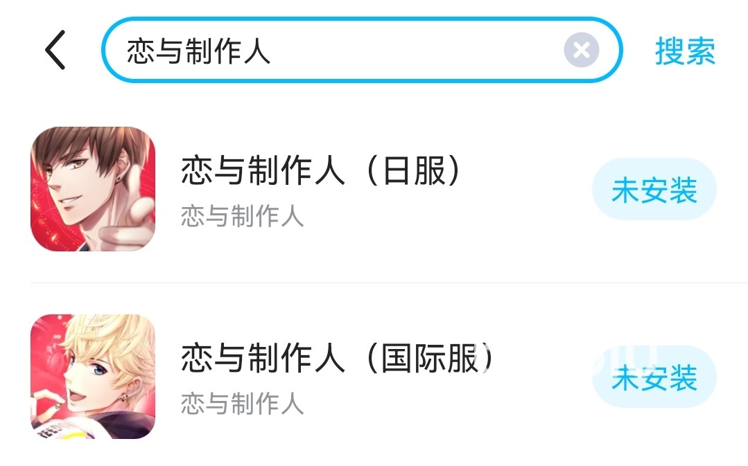 之后再打開biubiu加速器的游戲庫功能,在搜索欄中輸入戀與制作人日服,就能夠看到很多關于這款游戲的搜索結果。一定要注意找我們找的是日服,不要選錯了游戲服務器。