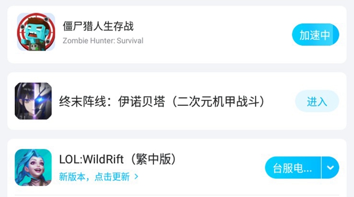 如果大家的手機上已經(jīng)安裝了僵尸獵人生存戰(zhàn)這款游戲,那么在打開加速器之后我們就能夠在首頁中看到這款游戲了。如果沒有下載安裝游戲,我們也可以直接在biubiu加速器內(nèi)進行搜索,并且打開游戲的專區(qū)進行游戲最新版本的下載和安裝。準(zhǔn)備完畢之后前往加速器的加速界面并且點擊游戲右側(cè)的加速按鈕就可以完成一鍵加速。