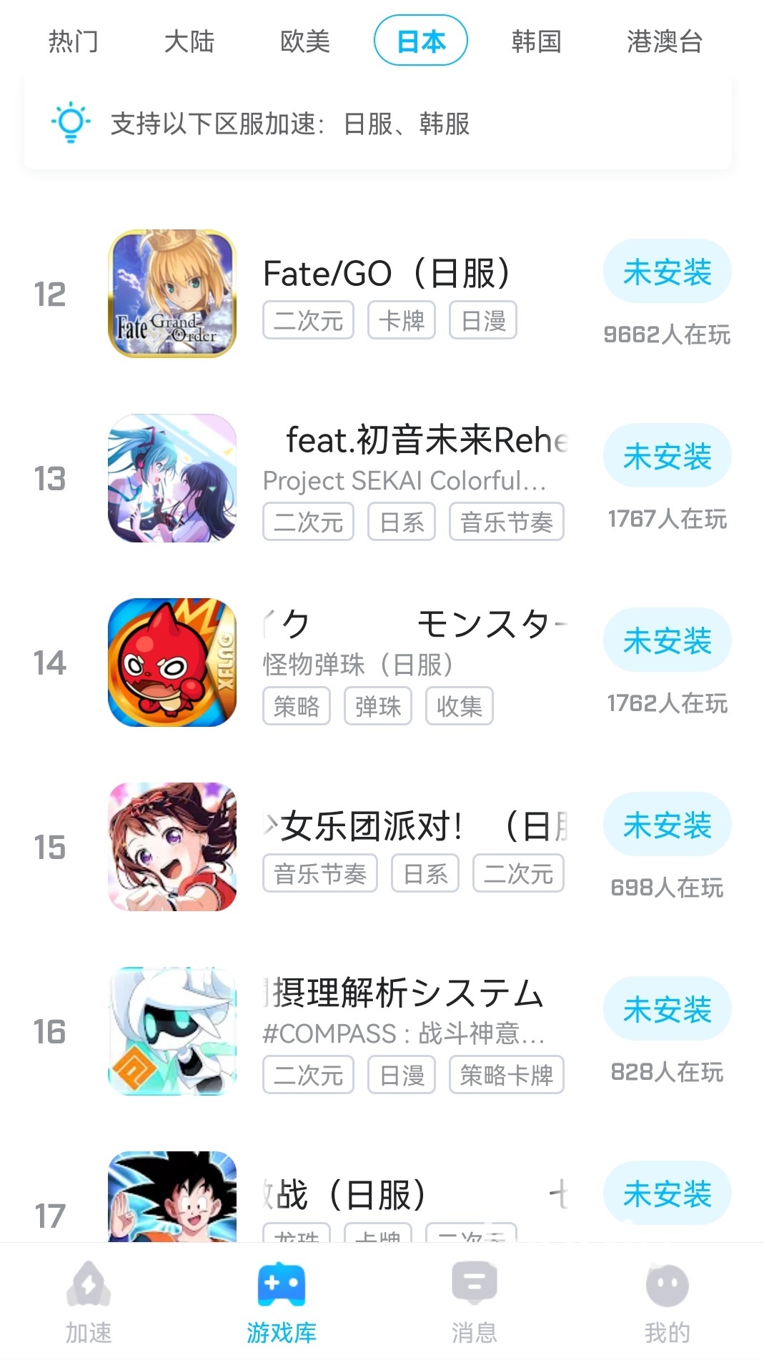在biubiu加速器的游戲庫中,還可以查看到很多其他日服的熱門游戲,這些都可以按照小編今天講述的操作教程去進(jìn)行加速。
