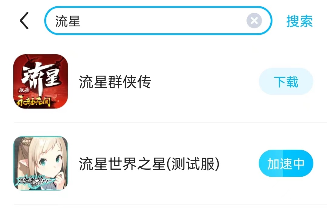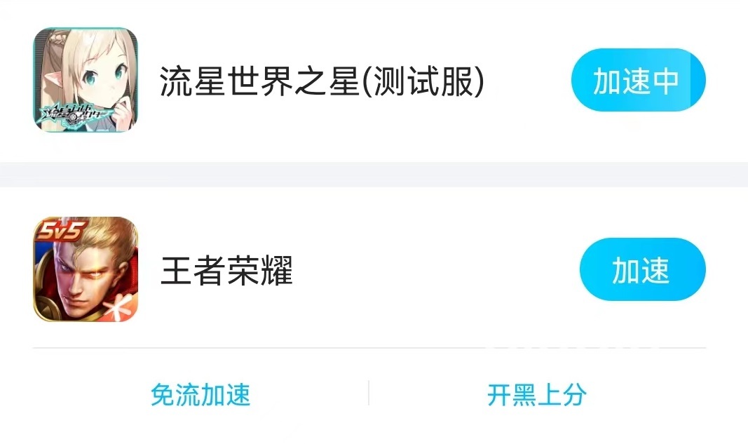 第二種方式可以在本地游戲中查看到當前手機中安裝的所有游戲,同樣找到流星世界之星測試服之后,點擊加速就可以了,效果是完全一樣的。