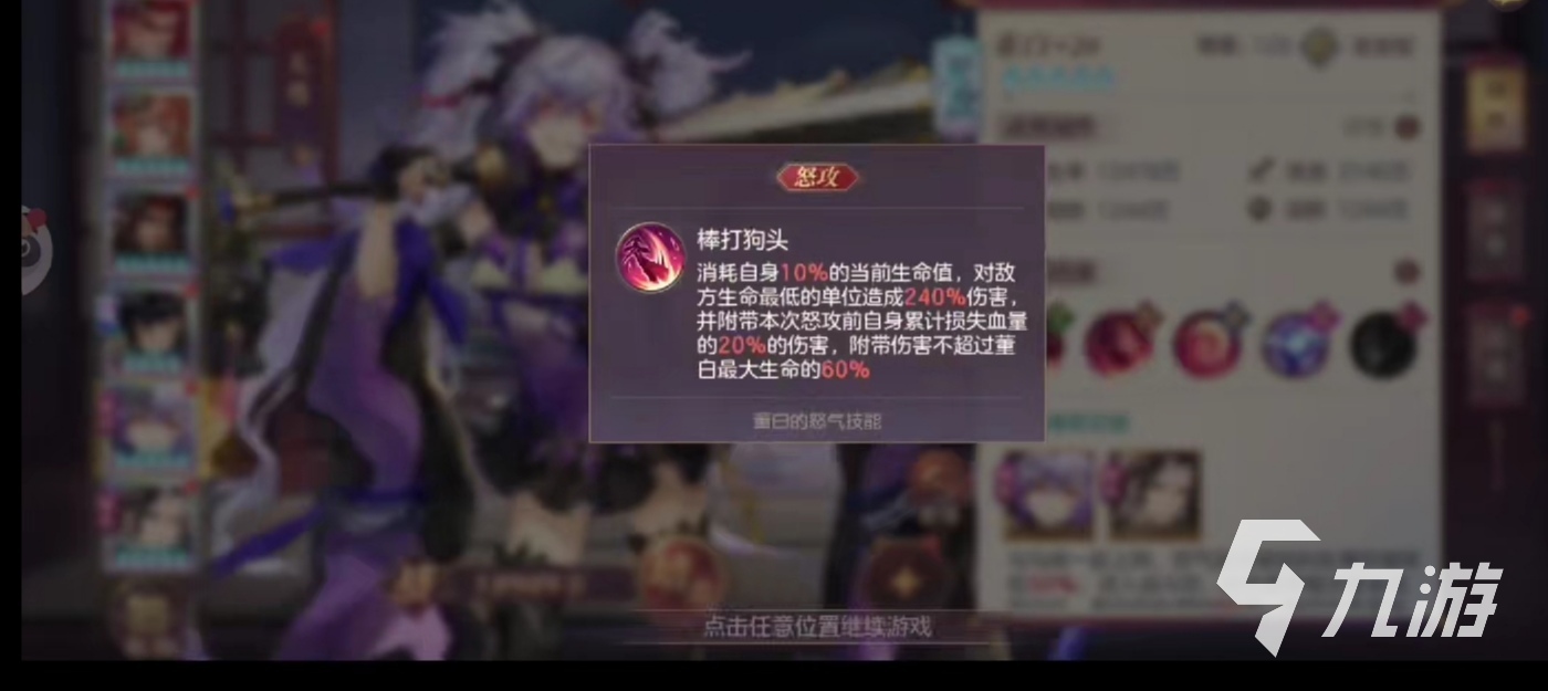 他的怒攻叫做棒打狗頭,雖然使用這招的前提是董白會(huì)消耗10%的生命力,但帶來(lái)的效果是非??捎^的,能夠?qū)撤缴底畹偷膯挝粠?lái)240%左右的傷害,并且附帶此次怒攻之前自身血量的百分之二十的傷害,最重要的是,隨著這個(gè)游戲角色的星級(jí)的提升,他還會(huì)擁有更多的技能,比如到二星級(jí)的時(shí)候,董白就會(huì)擁有一個(gè)新的技能守護(hù).超,這是一個(gè)被動(dòng)的技能,能夠讓董白的最終減傷提高16%。