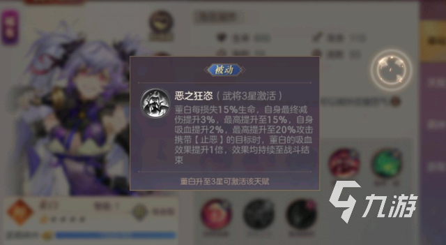 伴隨董白角色星級提升,它技能將增多,將擁有守護、強命超、兇惡血脈等技能。董白守護技能為被動型,提升其最終減傷16%。它三星技能為惡之狂恣,屬于被動技能。它兇惡血脈技能讓其攻擊延遲結(jié)算,讓董白擁有更久的登場時間,當它被治療之后,治療生命值大于攻擊值,董白就不會死亡,實現(xiàn)了角色復(fù)活。