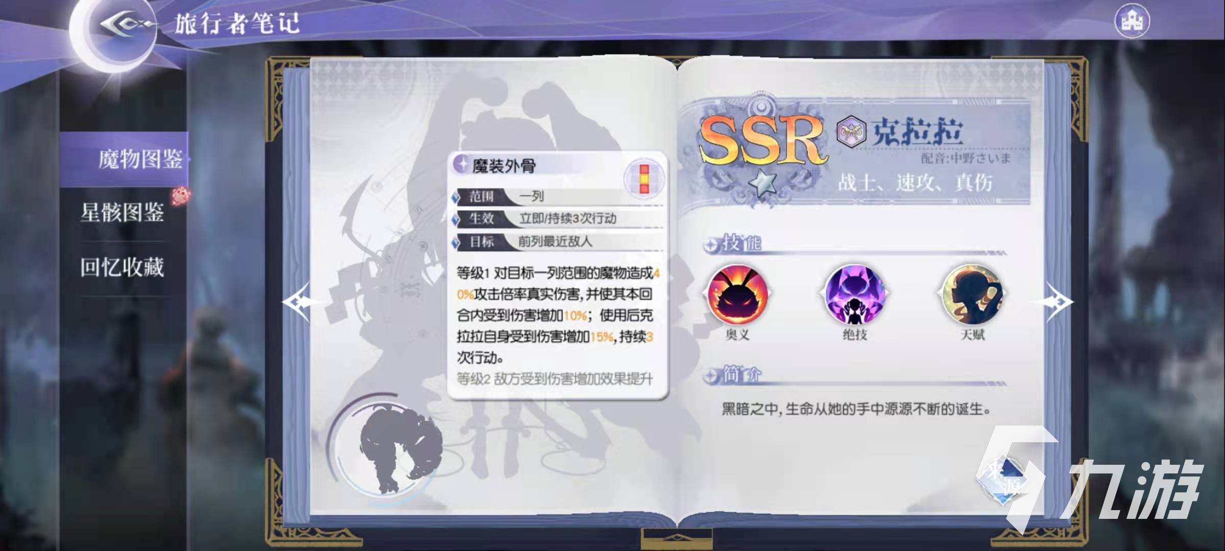 奧義技能的效果是攻擊敵方一列敵人,可以造成真實(shí)傷害,真實(shí)傷害無視目標(biāo)的任何防御效果,通俗說就是面板上有多少傷害,最后就是打多少血。雖然在使用之后,克拉拉會降低自身的防御,但是相對于真實(shí)傷害帶來的收益,也是非常劃算的。絕技的效果是傷害敵方一列敵人,造成真實(shí)傷害,并且附加傷害加深效果,使用之后克拉拉自身受到的傷害也會增加。