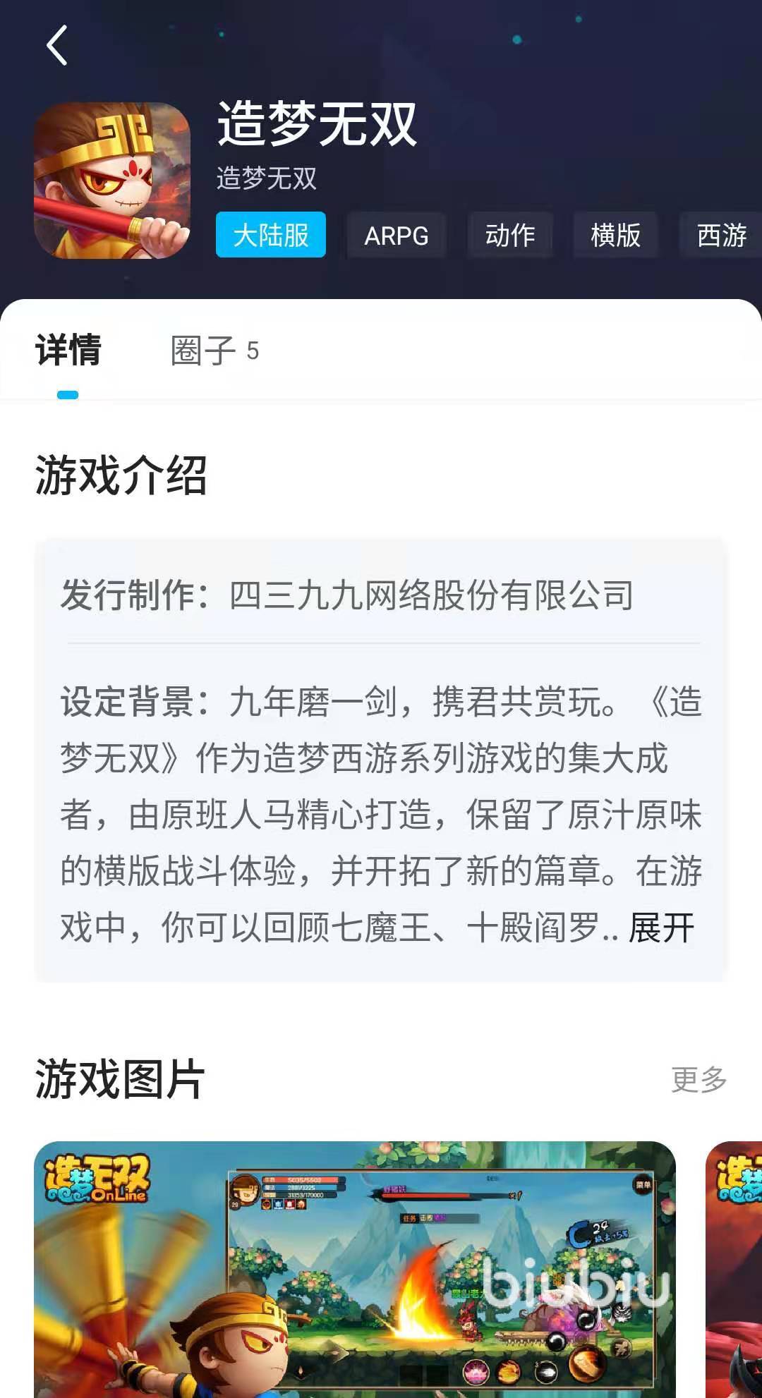 進入搜索界面后,在搜索框中輸入造夢無雙的名字,就可以在下面看見它了。點擊右側(cè)的下載按鈕即可。