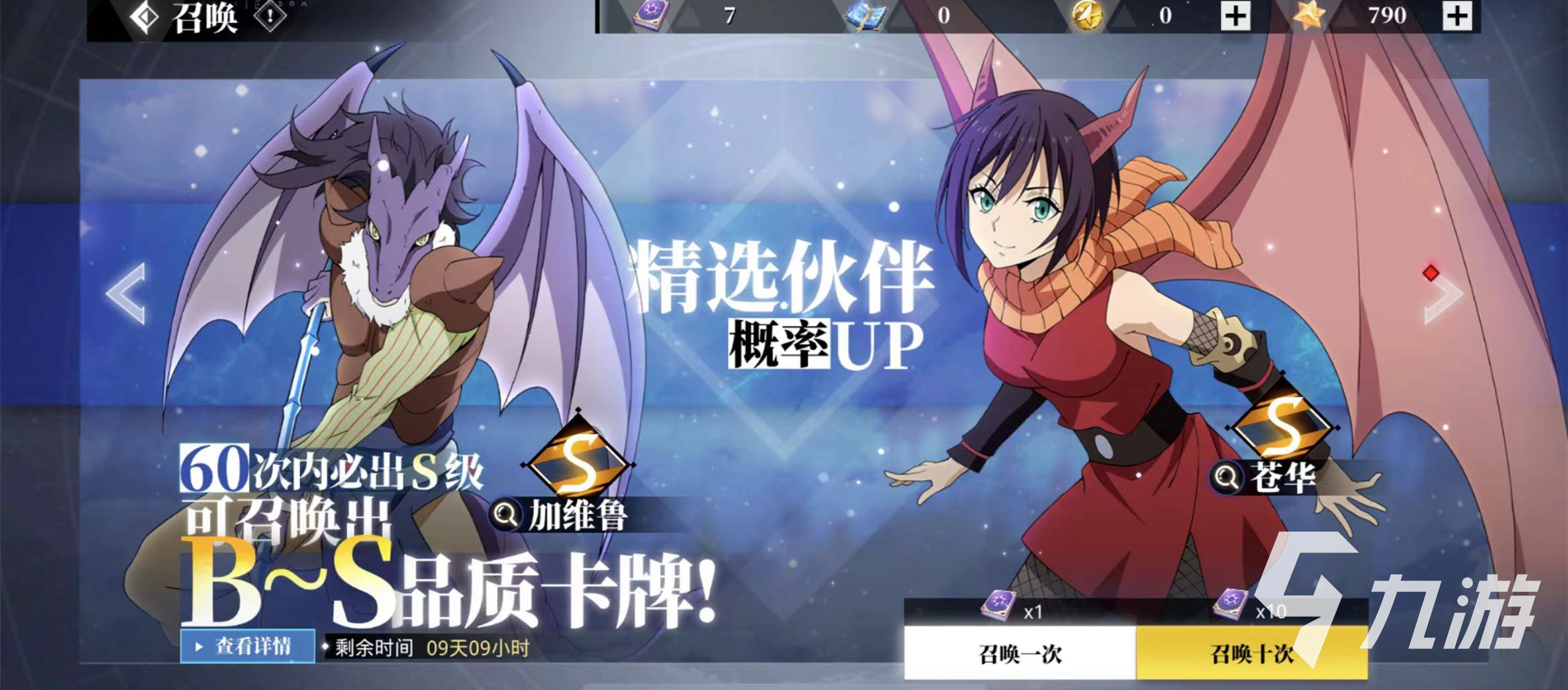 還有用羈絆契約來召喚角色的,同樣也是召喚一次和召喚十次,60次內(nèi)必出S級(jí)別的人物,從B到S級(jí)別的品質(zhì)卡牌,如果沒有這兩種抽取人物的道具,可進(jìn)行多次人物積攢一點(diǎn)就可以進(jìn)行角色獲取啦,每個(gè)活動(dòng)都會(huì)有時(shí)間限制,小伙伴們抓緊時(shí)間。