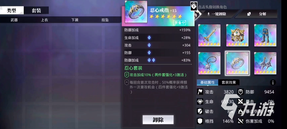 套裝能力是中后期的主要提升手段,不同的套裝在加成上是有一定區(qū)別的。而忍心套裝能力上加成較多,搭配適合的角色會帶來大量能力提升的。先來了解一下屬性,兩件套的屬性是攻擊加成10%,這個屬性的話就直接固定了輸出角色了,攻擊力的百分比加上輸出角色的基礎(chǔ)數(shù)值,帶來的收益是非常可觀的。要注意的是,一定要強(qiáng)化才會激活的。