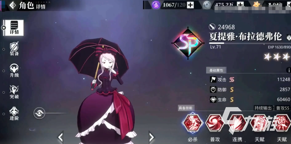 夏提雅這個角色在品級上是SP級別的,這個級別算是目前最高的一個設定了。在定位上夏提雅是一個持續(xù)輸出的普攻類型角色,輸出能力的基礎是不錯的。面板的攻擊是SS級別,防御和生命都是S,綜合能力來說是不錯的。再來看一看技能。