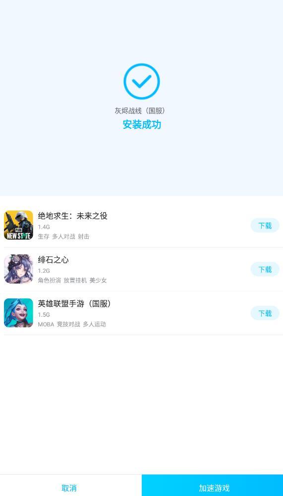 玩家在完成了游戲的下載之后,就會進(jìn)入游戲的安裝界面,玩家直接點(diǎn)擊安裝選項(xiàng),就可以開始游戲的安裝了;完成了游戲的安裝之后,玩家會看到下圖所示的界面,玩家直接點(diǎn)擊該界面的加速游戲,就可以開始這款游戲的加速了。