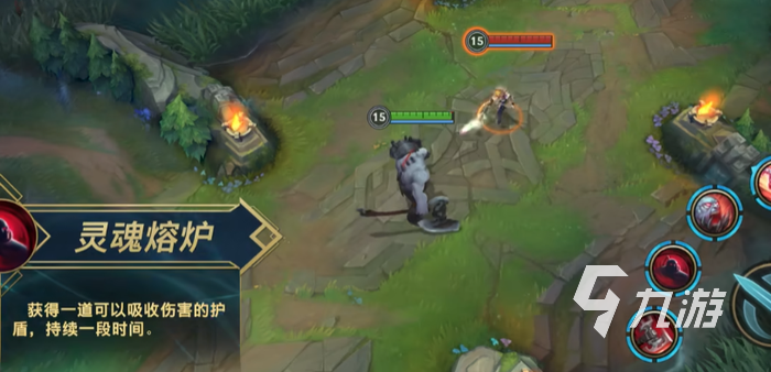 塞恩二技能是靈魂熔爐,這個(gè)技能就是加自己加護(hù)盾,短時(shí)間可以變?nèi)庖稽c(diǎn),若是護(hù)盾破了也可以對(duì)敵方造成傷害。