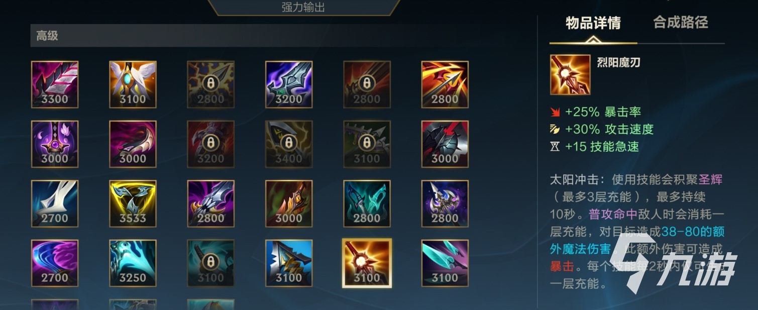 然后是烈陽魔刃(太陽刀),進(jìn)一步提升三維屬性,如果覺得缺少攻擊的話,也可以考慮用幽夢之魂,提供機動性與攻擊以及不錯的穿甲,手游里的幽夢還是一個性價比很高的裝備。