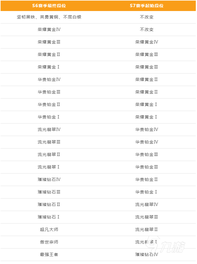 來源: 極光 作者: 大臉麻麻 2022年10月09日 17:44S6賽季將在13號結(jié)束,新賽季也將在那天到來,那么今天這里給大家?guī)砹擞⑿勐?lián)盟手游s7賽季段位繼承表相關(guān)介紹,新賽季段位重置機(jī)制還有很多玩家不太清楚是怎樣的吧,那么今天這里就給大家?guī)砹俗钊慕榻B,還不知道的玩家快來一起看看吧,希望對玩家有幫助。
