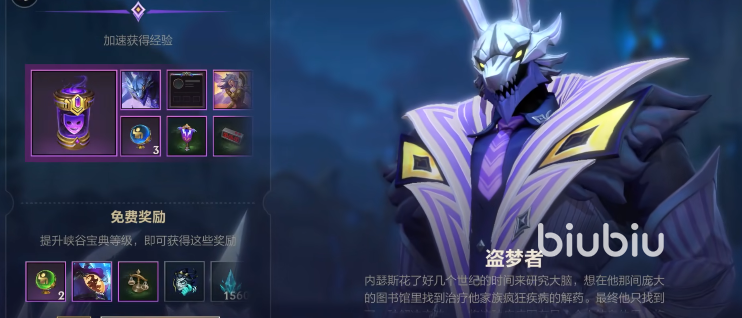 這里除了可以領(lǐng)取的免費(fèi)隨機(jī)史詩皮膚寶箱,還有一個皮膚是寶典里面的專屬皮膚,需要大家在等級到達(dá)五十級以后才可以領(lǐng)取,那就是狗頭的一個皮膚盜夢者,總體外觀來看還是比較錯,并且在七十五級以后還可以獲得該皮膚的姿態(tài),值得注意的是在賽季結(jié)束,也就是寶典更新以后,這個皮膚大家就沒辦法獲取了。
