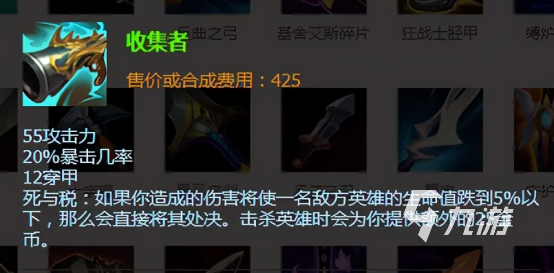 效果:1、+55攻擊力 +20%暴擊率 +12物理穿透 2、對(duì)低于5%生命值的敵人產(chǎn)生傷害時(shí),可以直接處決它們,并額外獲得25金幣。