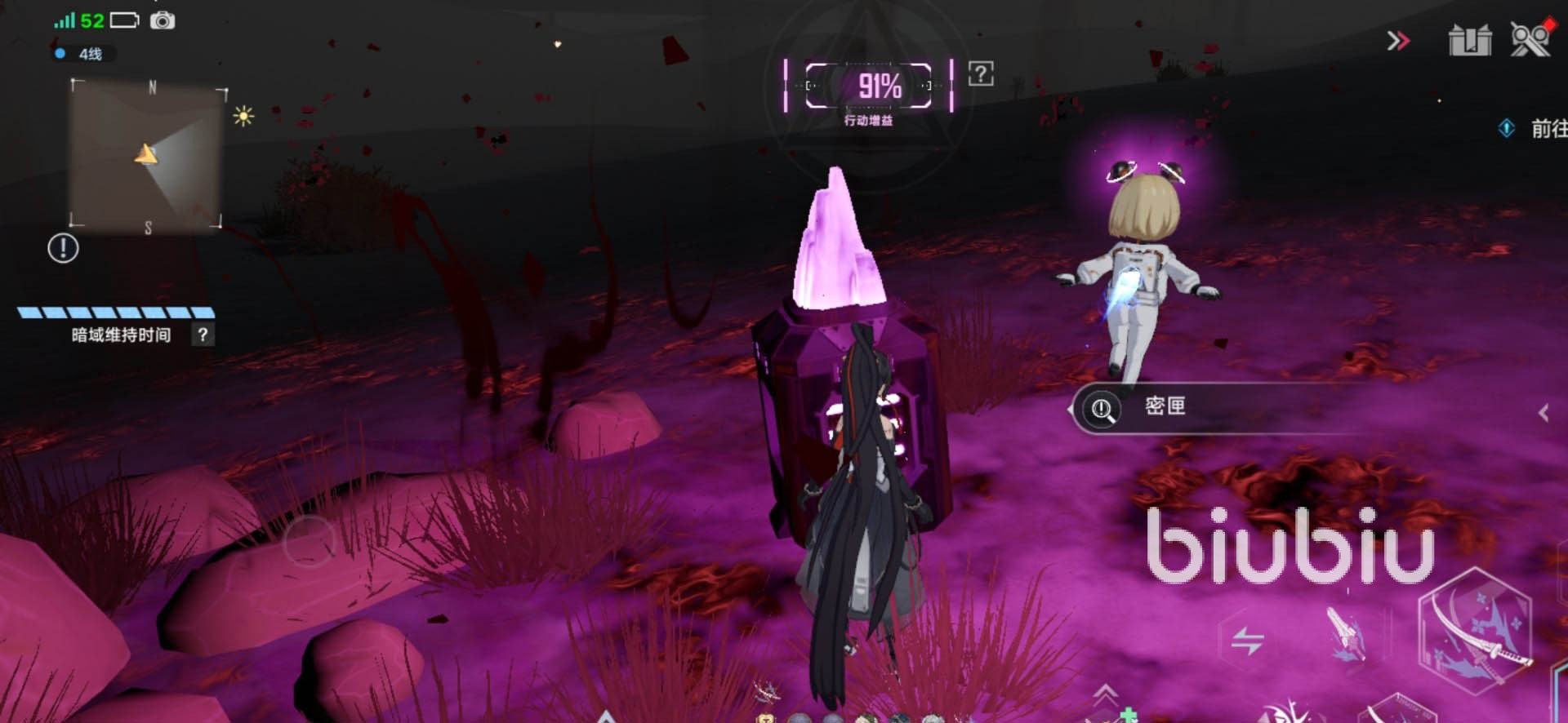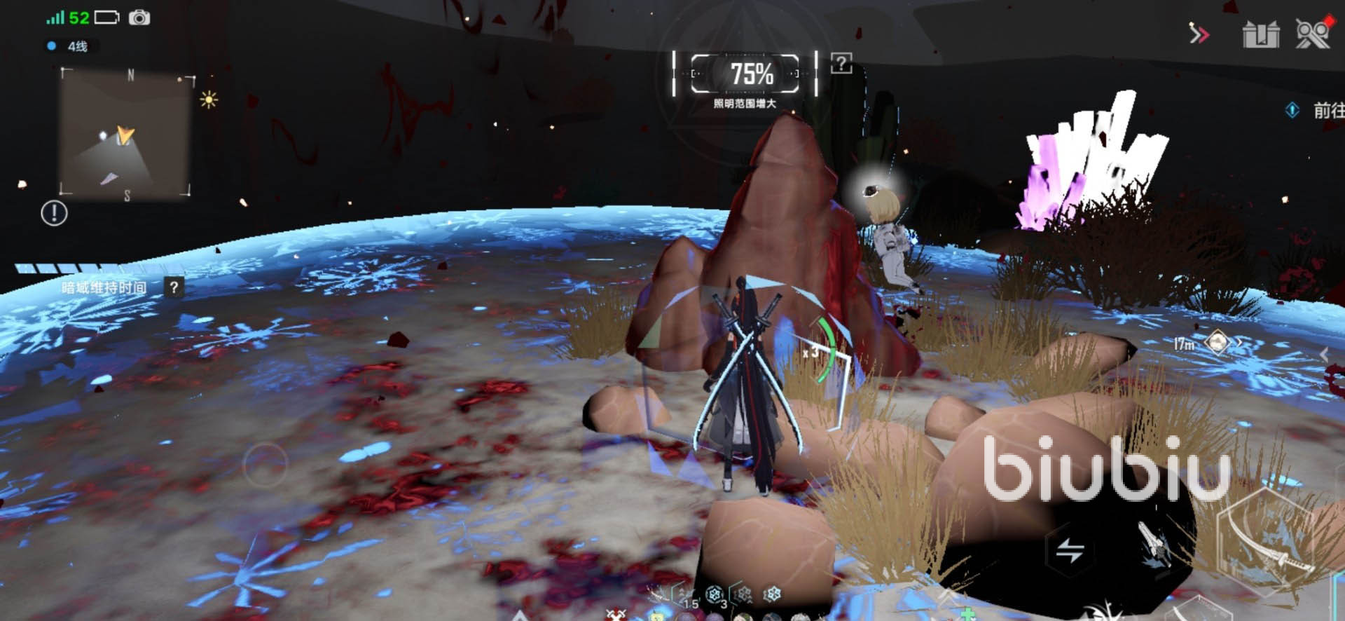 值得一提的是,既然是叫做暗域,其內(nèi)的可視度就很低,小伙伴們一定要帶上照明才能看清,而在里面能找到不同的晶石來作為照明物,而在屏幕的上方就能直觀的看到一個照明度提示,一旦耗盡的話,眼前就重歸黑暗了。