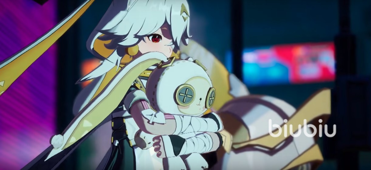 蕾貝造型設(shè)計(jì)還是很棒的,許多二次元玩家喜歡的萌點(diǎn)都有,像是長(zhǎng)長(zhǎng)的耳朵裝飾,白毛,眼罩(邪王真眼),還有小挎包,以及一個(gè)大眼玩偶“多莉”一直伴隨在蕾貝的身旁。