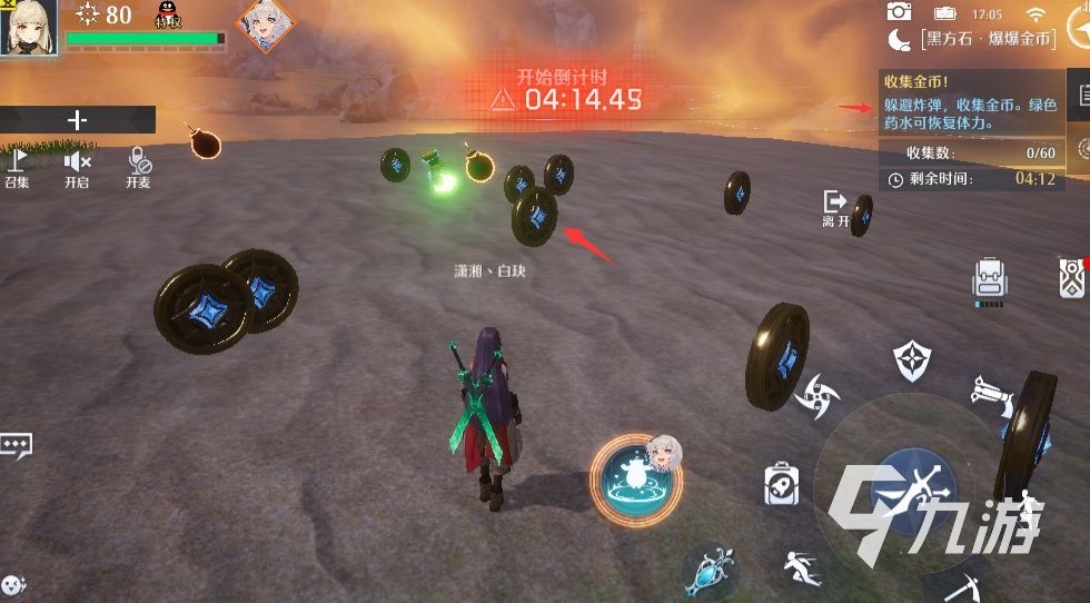 只要在給定的時(shí)間內(nèi)收集盡可能多的金幣,同時(shí)避開炸彈就OK,注意藥瓶是可以恢復(fù)體力的哦。