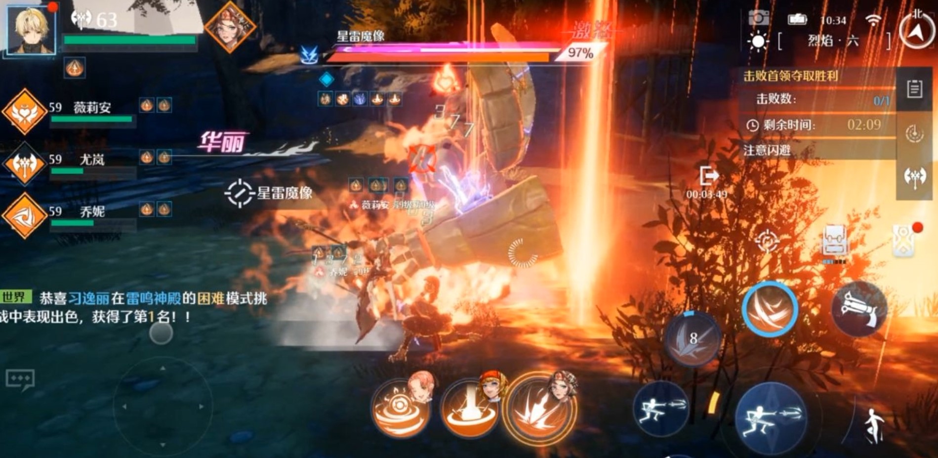 雙光則增加法術(shù)抗性和物理抗性。奧里亞給方提供護(hù)盾和攻擊力,接著方召喚月華和傳送門來(lái)不斷降低敵人的抗性,最后在切換火屬性角色來(lái)進(jìn)行收尾即可,打的時(shí)候多注意躲技能。