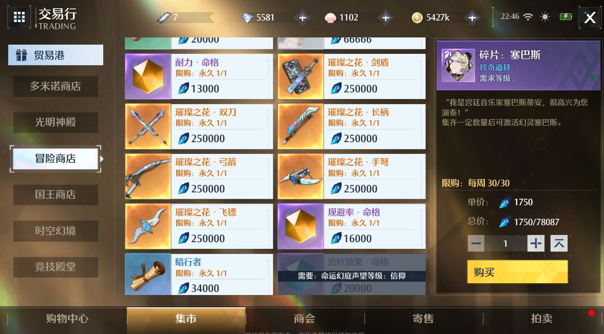 聲望獎(jiǎng)勵(lì)同樣包含在聲望界面隨等級提升可領(lǐng)取的鉆石獎(jiǎng)勵(lì),還能解鎖貿(mào)易港中的冒險(xiǎn)商店,用風(fēng)之試煉得到的幻晶在這里購買橙色武器、命格、稱號、碎片等獎(jiǎng)勵(lì),對玩家提升顯著,所以要盡可能多的提升幻庭聲望哦。
