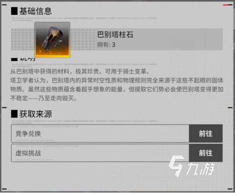而另一種材料就是高階的了,名為“巴別塔柱石”,作為核心的進階材料,小伙伴們可以去打虛擬挑戰(zhàn),也就是爬塔來獲取它,同時也能去打危機競爭,利用積分來換取該材料。