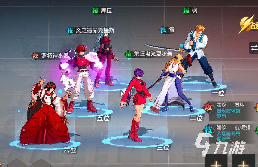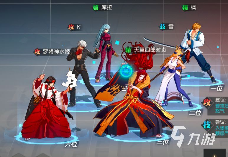 這套陣容所需要的角色有雪、楓、k、庫拉、天草四郎時貞、羅將神水姬,楓放在一號位屬性選擇輔助型,雪放在二號位,屬性選擇技巧型,天草四郎時貞放在三號位,屬性選擇輔助型,庫拉放在四號位,屬性選擇輔助型,k放在五號位,屬性選擇攻擊型,羅將神水姬放在六號位,屬性選擇攻擊型,該組合的主力是時貞,之所以可以組成這個隊,最關(guān)鍵就在于他的被動技能每次友方單位攻擊敵人都可以給自己回復(fù)藍(lán)量,而其他隊友又全都是攻擊速度快的,所以他在場上可以快速釋放多段大招,雖然每次傷害并不高,但通過不斷疊加還是非??捎^的,庫拉負(fù)責(zé)冰凍對手起到控場效果,雪和楓作為前排抵御傷害,k和神水姬給隊友進(jìn)行增幅。優(yōu)點和盾輔隊優(yōu)點像,都是比較擅長打持久戰(zhàn),不過缺點也同樣明顯,怕一些抑制藍(lán)量回復(fù)的角色。