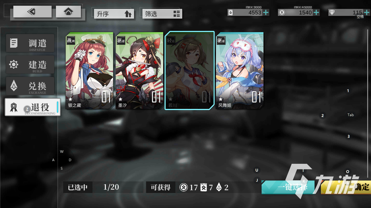 在進(jìn)入到界面之后可以直接看到當(dāng)前可以退役的一些艦靈,這個(gè)大家要注意,是系統(tǒng)直接設(shè)定的。如果說(shuō)想要將一些艦靈留下來(lái)當(dāng)做養(yǎng)成材料的話(huà),那么點(diǎn)擊一鍵選擇這里會(huì)彈出設(shè)定。玩家可以選擇已養(yǎng)成或者說(shuō)未養(yǎng)成的艦靈,同時(shí)在各個(gè)品級(jí)的選擇上也是可以進(jìn)行設(shè)定的,這個(gè)是非常方便的。在點(diǎn)擊確定好要退役的艦靈之后,點(diǎn)擊右下角的確定按鈕就可以完成操作了,是比較簡(jiǎn)單的。