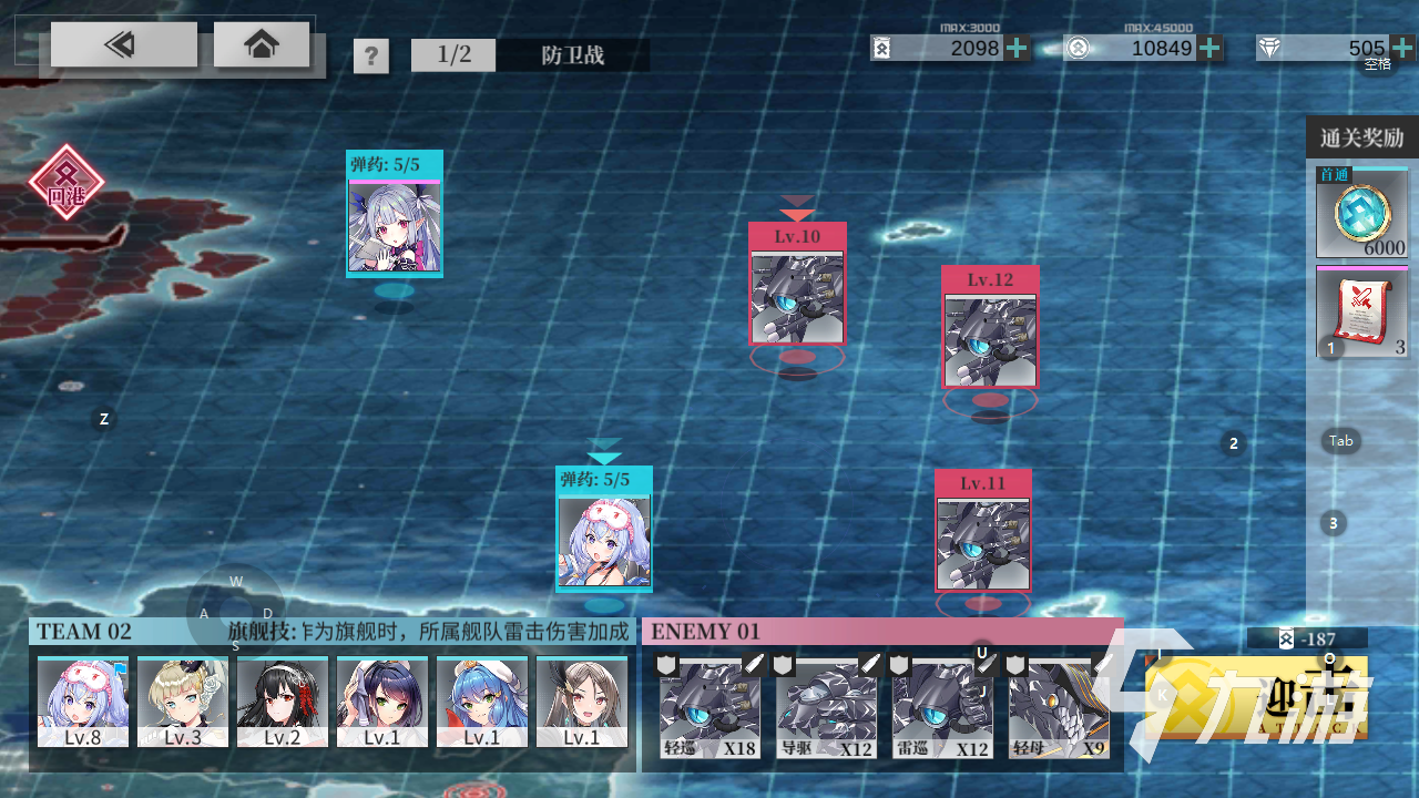 除了出擊限制這個設(shè)定之外,在防衛(wèi)戰(zhàn)里面編隊的話還有一個彈藥的設(shè)定。這個彈藥不是說艦靈的彈藥種類設(shè)定,就是一個戰(zhàn)斗次數(shù)的限制。每個隊伍都是有五顆彈藥的,在戰(zhàn)斗之后會消耗一顆彈藥。而沒有彈藥之后那么就無法進行戰(zhàn)斗了,所以說合理的安排戰(zhàn)斗次數(shù)也是比較重要的。
