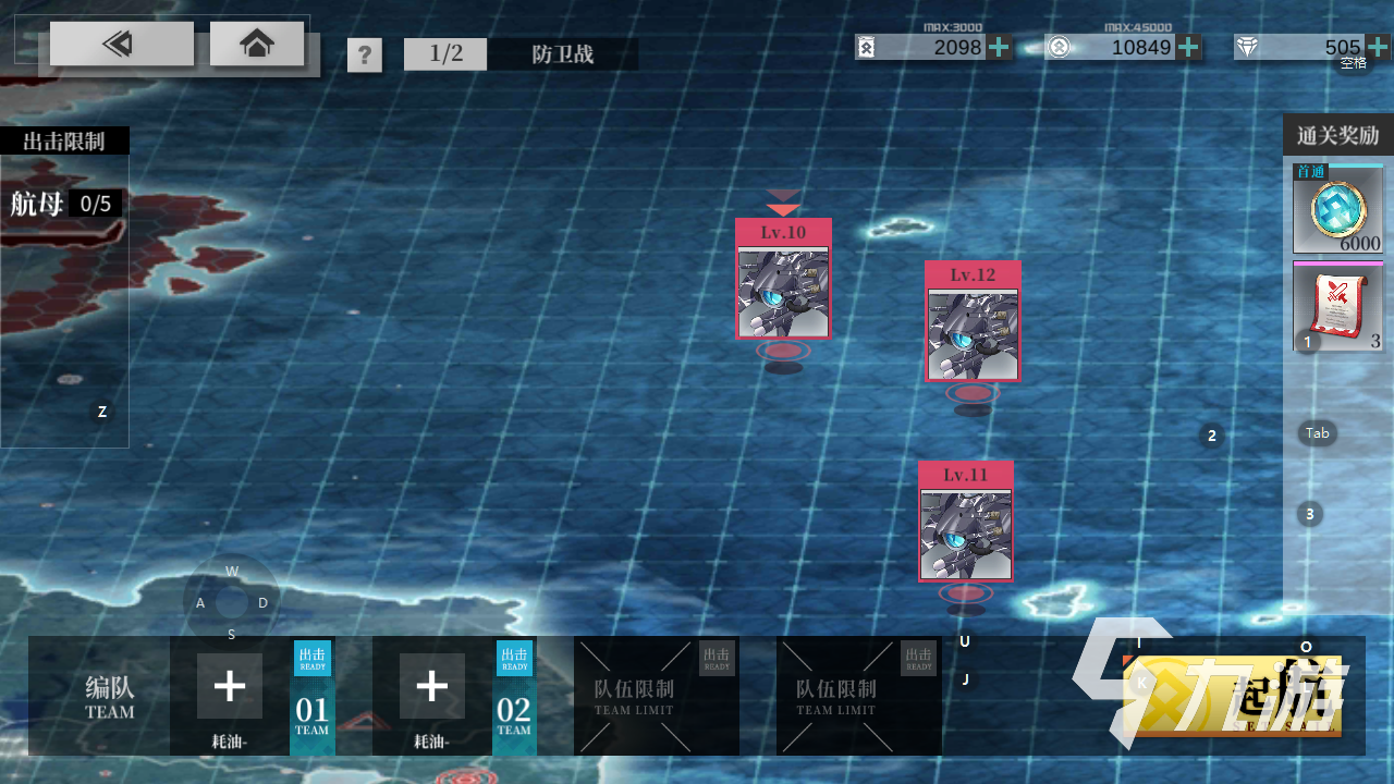 在進入到戰(zhàn)斗界面之后,玩家要做的就是隊伍的編制。但是要注意一點,在防御戰(zhàn)里面有一個出擊限制的設(shè)定。簡單來說這個設(shè)定就是某些戰(zhàn)斗中無法使用某些艦靈的種類,比如說第一波無法使用航母這個艦靈。那么玩家在搭配隊伍的時候就要靈活一點了,否則的話在戰(zhàn)斗中是無法獲得優(yōu)勢的。