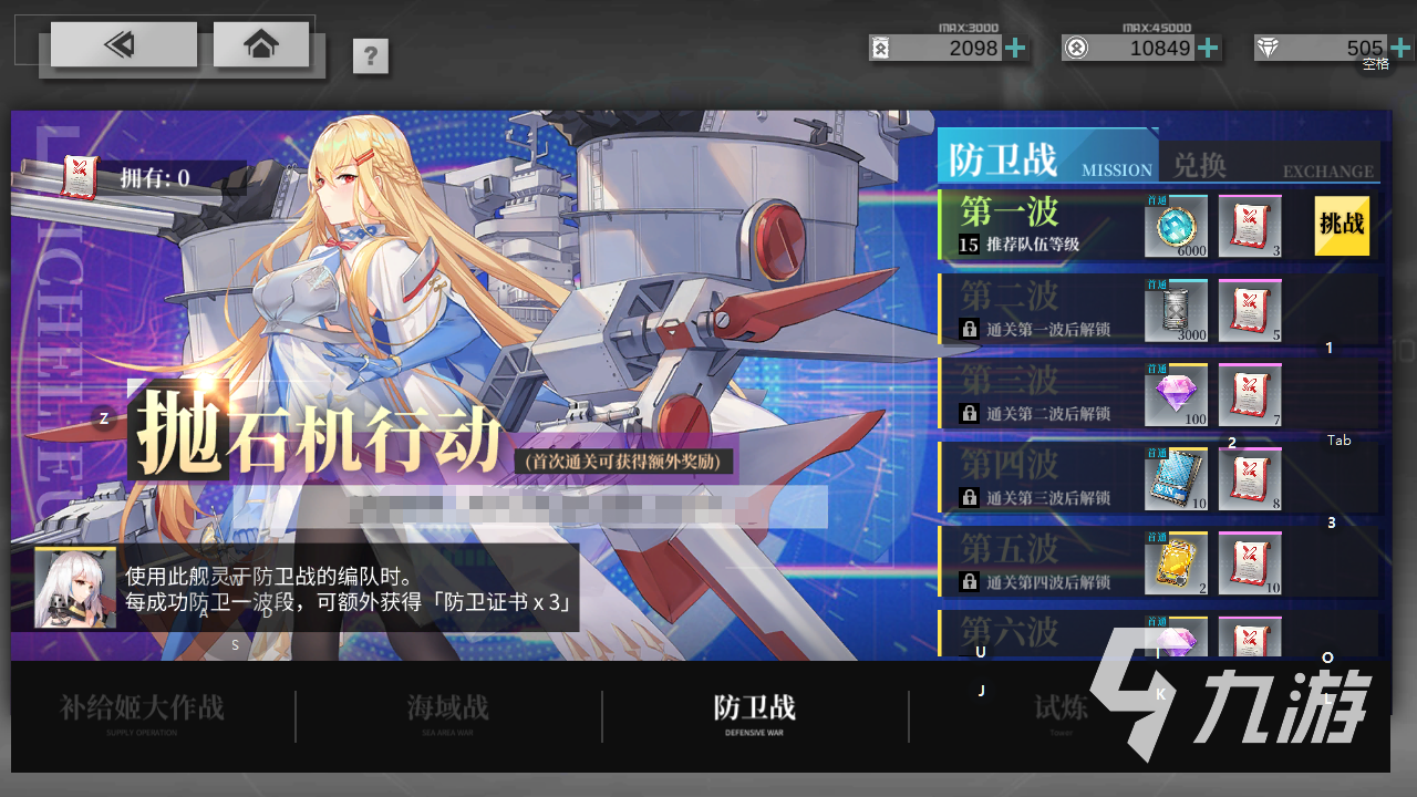 在敵人方面,防衛(wèi)戰(zhàn)里面會出現(xiàn)幾波的小型敵人以及bOSS敵人,不過在前面的幾次戰(zhàn)斗中BOSS是不會出現(xiàn)的。所以說,玩家只要合理的安排好艦靈出戰(zhàn)以及彈藥的消耗,那么通關(guān)是相對簡單的。在通過之后可以獲得防御證書這個道具,該道具可以用在對應(yīng)的商店中來兌換道具。