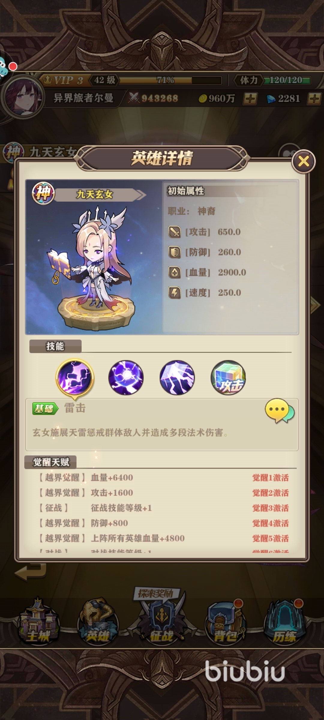 在游戲當中作為12名sssr級別的之首的龍女一直受到廣大玩家的好評,很多玩家都想擁有一張龍女卡充實自己的英雄庫。龍女的職業(yè)是神裔,字面翻譯就是神的后裔。龍女的初始四維屬性比普通的ssr卡英雄屬性值要高十倍左右,作為稀有屬性卡龍女的攻擊傷害作為多段持續(xù)性傷害,與控制系英雄搭配產(chǎn)生的游戲效果可以碾壓全場。