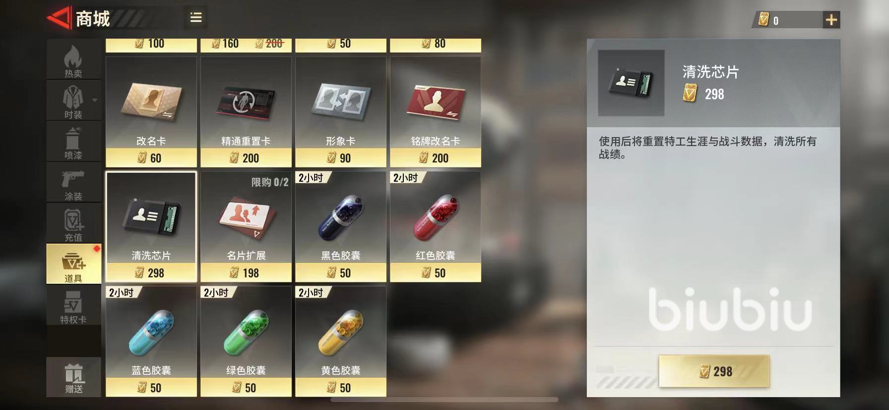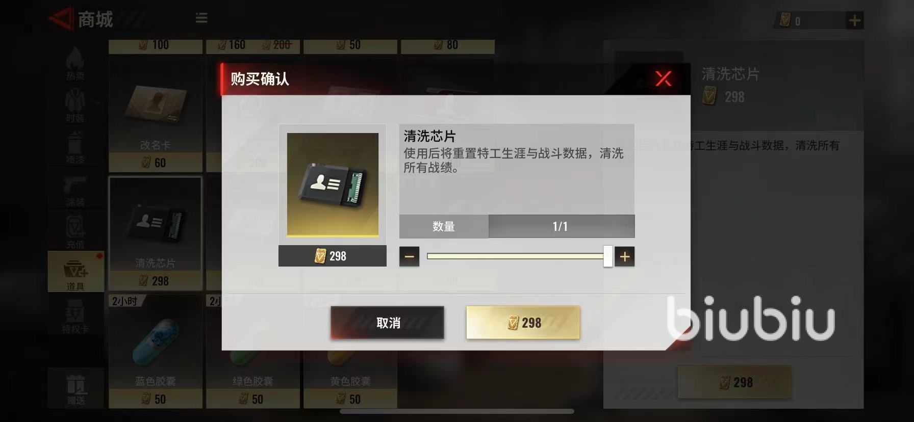 第2種方法就是在商店內(nèi)進(jìn)行購(gòu)買(mǎi),玩家可在游戲主頁(yè)面的左側(cè)找到商店圖標(biāo),點(diǎn)擊進(jìn)入之后選擇道具板塊,里面就有清洗芯片的購(gòu)買(mǎi)鏈接,一個(gè)清洗芯片價(jià)值298點(diǎn)券,點(diǎn)券可以通過(guò)充值獲取,也可通過(guò)完成任務(wù)兌換。