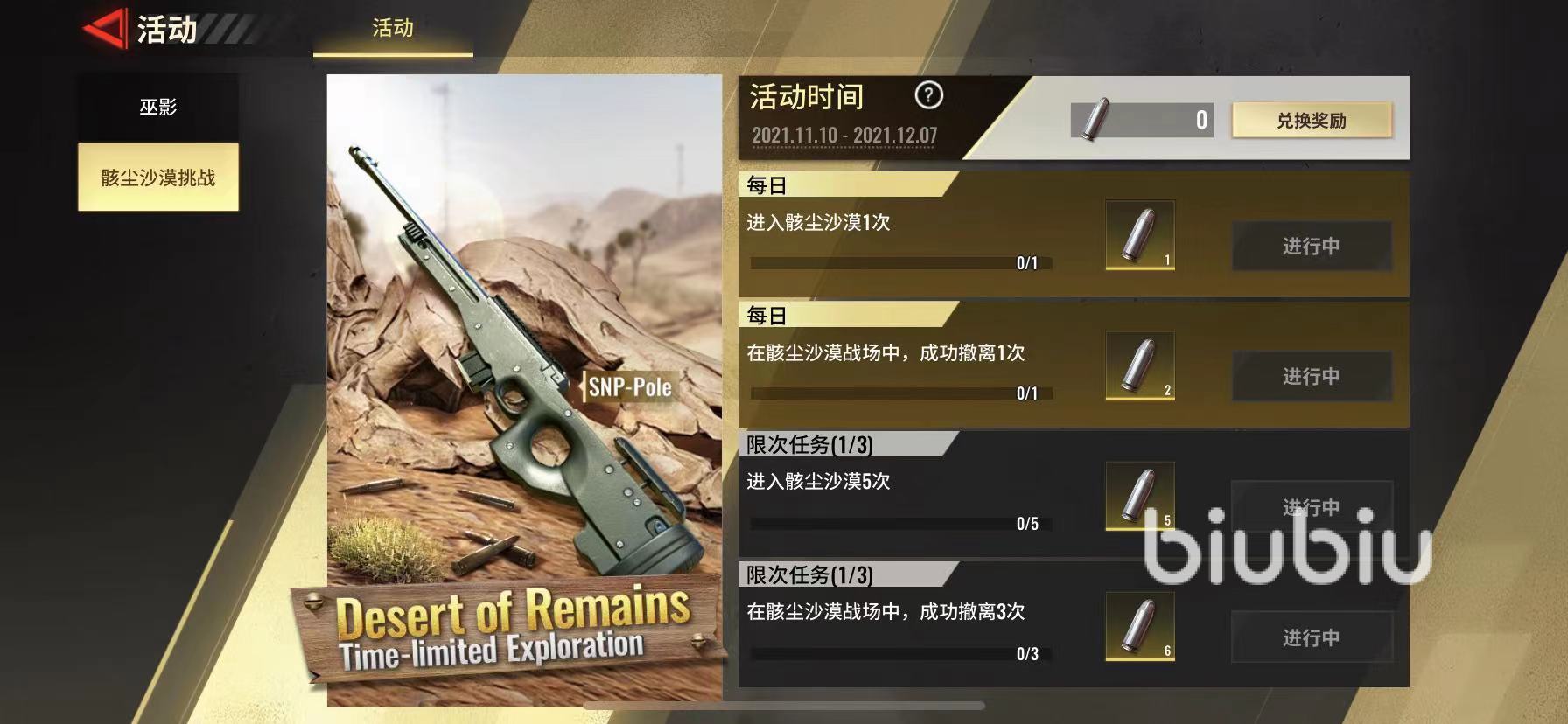 除了這個地圖挑戰(zhàn)玩法之后,游戲內(nèi)還有一個骸塵沙漠的限時活動,玩家可以在活動界面找到骸塵沙漠挑戰(zhàn),通過完成挑戰(zhàn)內(nèi)的任務(wù)獲取銀色子彈,當(dāng)銀色子彈積攢到一定程度時可以在限時商店內(nèi)換取自己需要的物資,限時商店里面的物資包括了一些極品裝備,定型劑等等,正常情況下,這些物資都是需要花錢才能買的,現(xiàn)在這個好的一個時機(jī),玩家們千萬不要錯過哦。