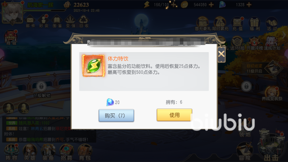 (4)購買體力:要說鉆石最大的作用,那肯定是用來購買體力了。前期刷圖才是最重要的,很多任務需要一定的等級才能解鎖。早一天升級解鎖任務,就能多得一次任務獎勵、不過由于每次購買體力后售價會逐漸增加,因此大家最好不要一天買太多次,保證兩三次夠用即可。