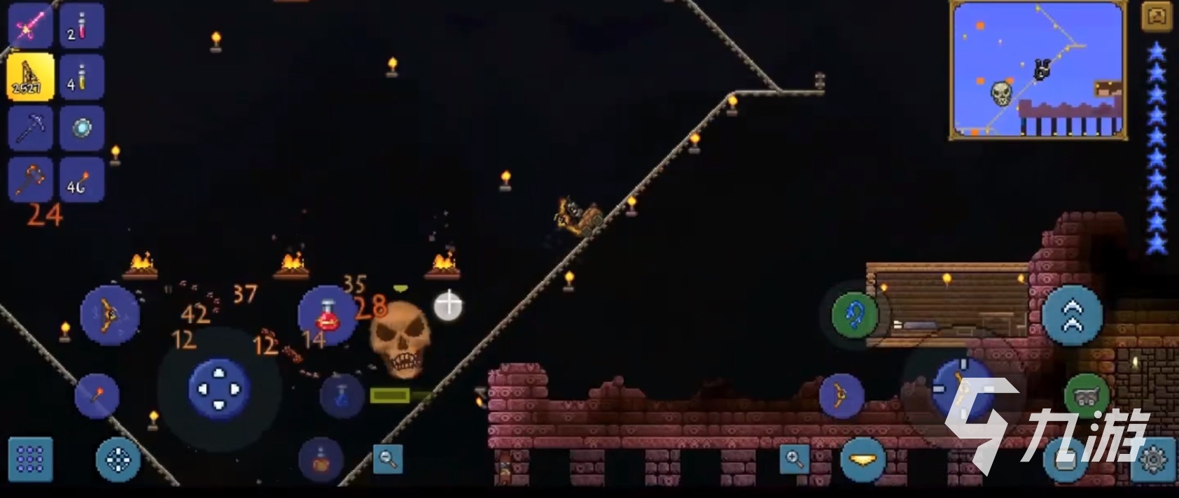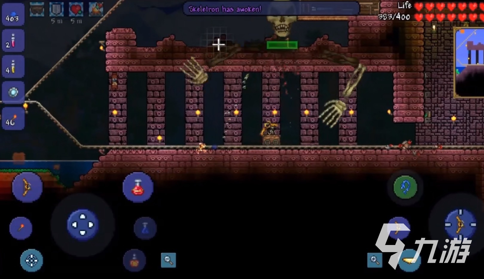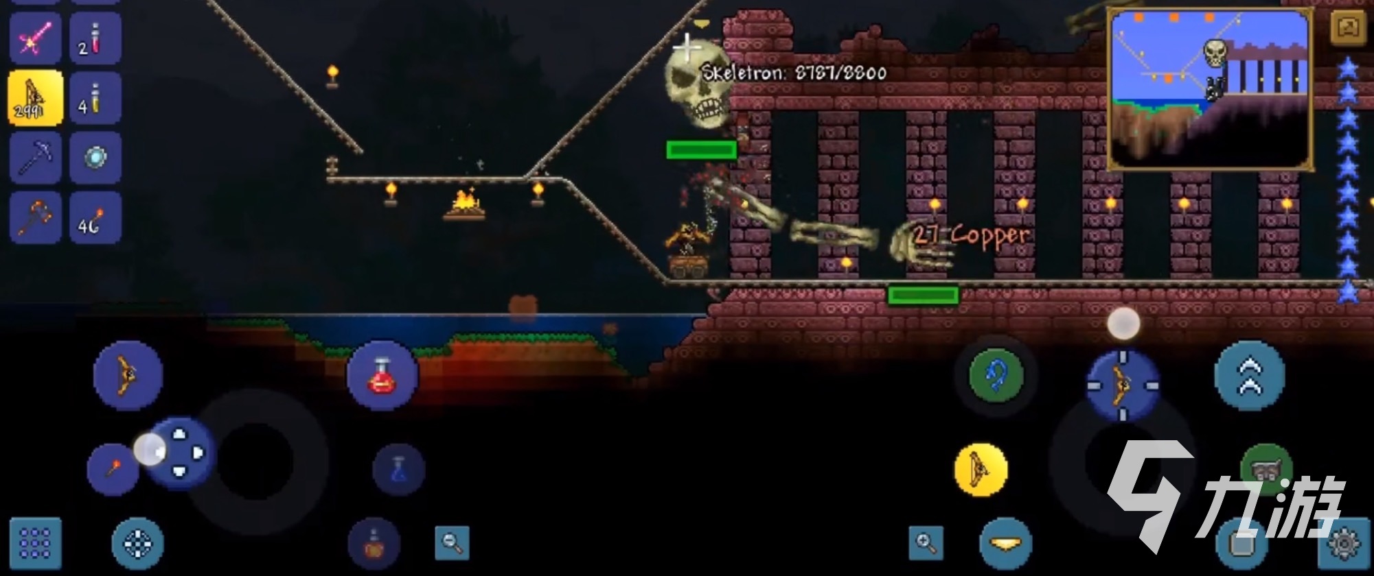 打骷髏王推薦大家使用魔鏡跟回憶藥水,還要記住不要在骷髏王的頭上用史萊姆坐騎連跳。裝備的話推薦一套化石盔甲加上50個(gè)手榴彈,打骷髏王用反彈武器比較有效。
